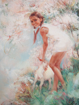 Картина " Две козочки" формат 40-60см Холст масло, на подрамнике.